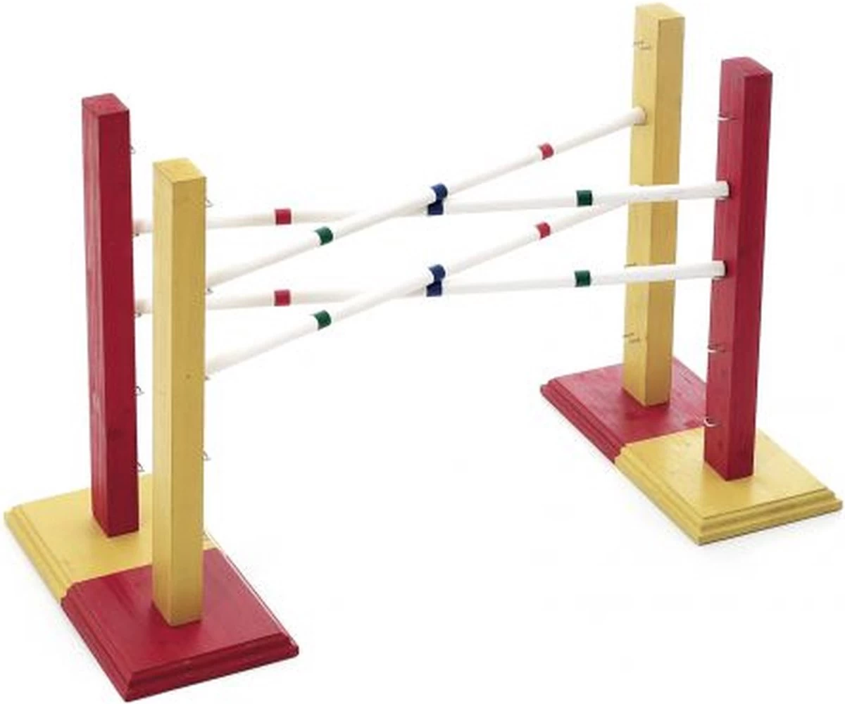 Een konijn moet voldoende beweging krijgen. Met deze houten hindernis Bunny Sport?s Hopp 3 wordt beweging geven een plezier. Over obstakels springen is een natuurlijk bezigheid voor een konijn. De hindernis bestaat uit 2 paar staanders met elk 5 balksteunen en 4 balken. Zo kunt u zelf kiezen door middel van verschillende opstellingen of u wilt hoogspringen of wilt verspringen. De balken liggen los op de steunen zodat deze eraf kunnen vallen mocht het dier er tegen aan komen.