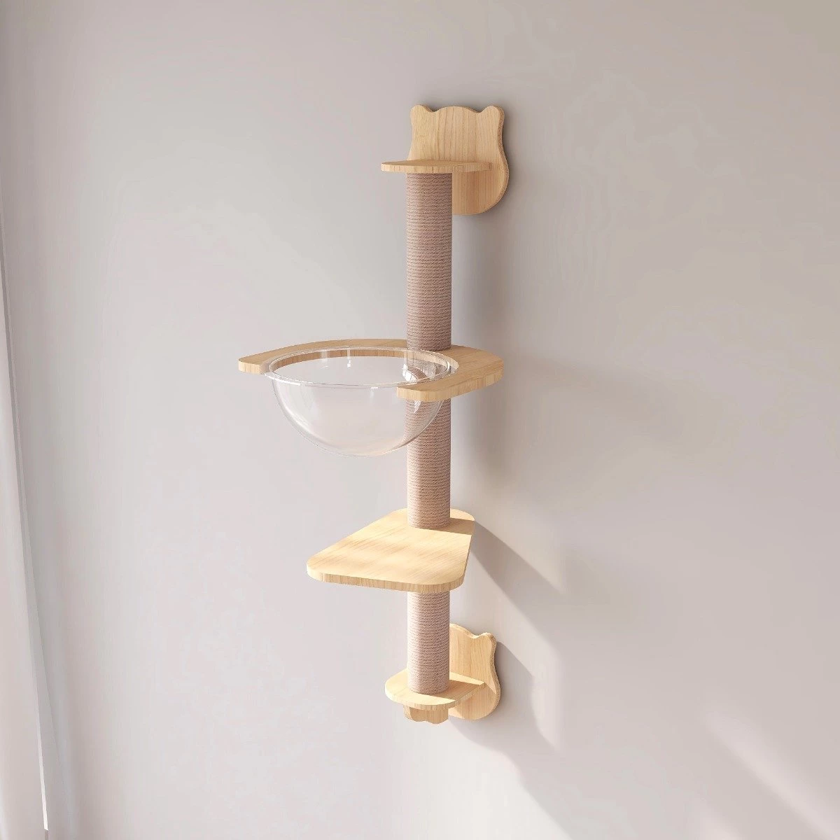 Aan de wand monteerbare klimpaal voor katten. Ideaal voor speelse katten. De paal is uitgerust met een krabpaal, een bakje en een standaard. De afmetingen zijn 40*30*110cm (LxBxH). Naast dat de katten urenlang speelplezier hebben beschikt de katten klimmpaal ook over een uniek klein bakje waar ze in kunnen zitten. Hierin kan de kat na het spelen heerlijk ontspannen. In alle rust, op een eigen plekje waar anderen jouw huisdier niet kunnen storen. Daarnaast is de rust- en speelplek een echte eyecatcher in huis om ook aan jouw interieur wensen te kunnen voldoen.