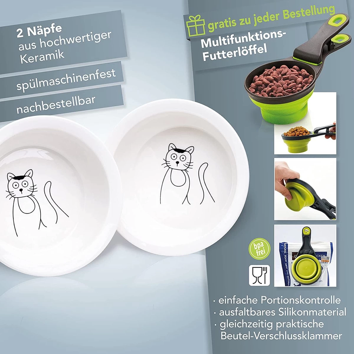 - β Eenvoudig te gebruiken: een waterafstotende impregnatie van bamboe beschermt de kattenbak tegen vuil en vocht. De voerresten kunnen gemakkelijk met een vochtige doek worden afgeveegd, want ons voerstation is 100% spatwaterdicht.