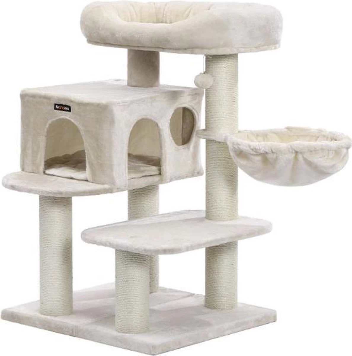 Of je nu een gespierde Ragdoll-kat of een grote Savannah-kat in je huis rondsnuffelt, je wilt het veilig spelen met je kleine viervoeter. Daarom is deze kattenboom uitgerust met een dubbellaagse bodemplaat en een anti-kipper. Zelfs dikker dan voorheen, zorgen de sisalpalen ook voor maximale stabiliteit.