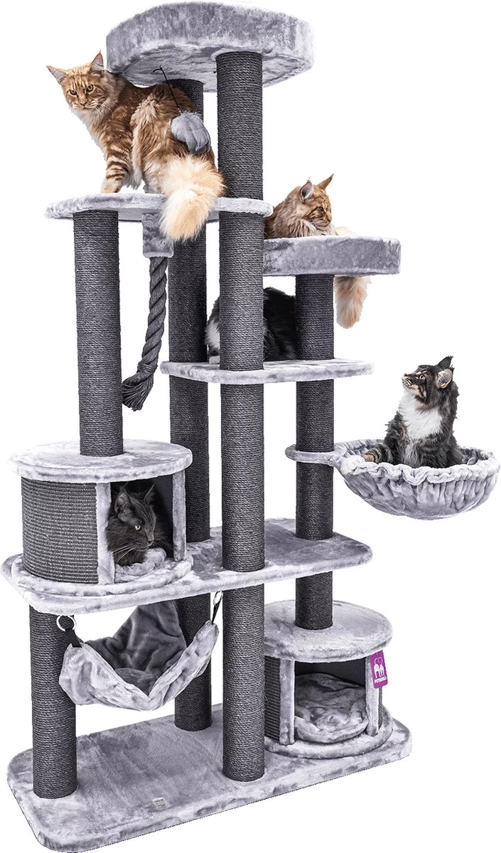 Heb je een Maine Coon, Noorse Boskat, Ragdoll of ander groot kattenras? Dan heb je een extra sterk krabmeubel nodig, want deze katten hebben behoefte aan dikke krabstammen en ruime slaapplaatsen. Met onze Scenic View 197 zit je gebakken! Dit klimparadijs is namelijk ontworpen om grote én kleine katten te verwennen met lekker veel slaapplekjes en krabstammen van maar liefst 12 centimeter dik. En daarbij zijn de prachtige kleurencombinaties en het stoere design ook nog eens een lust voor het oog!