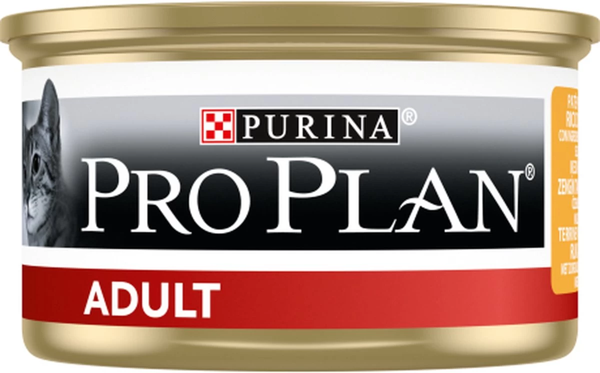 PURINA® PRO PLAN Adult Terrine is heerlijk bereid met kip waar jouw kat van zal genieten. Het kattenvoer is speciaal samengesteld met alle essentiële voedingsstoffen voor een lang en gezond leven.
