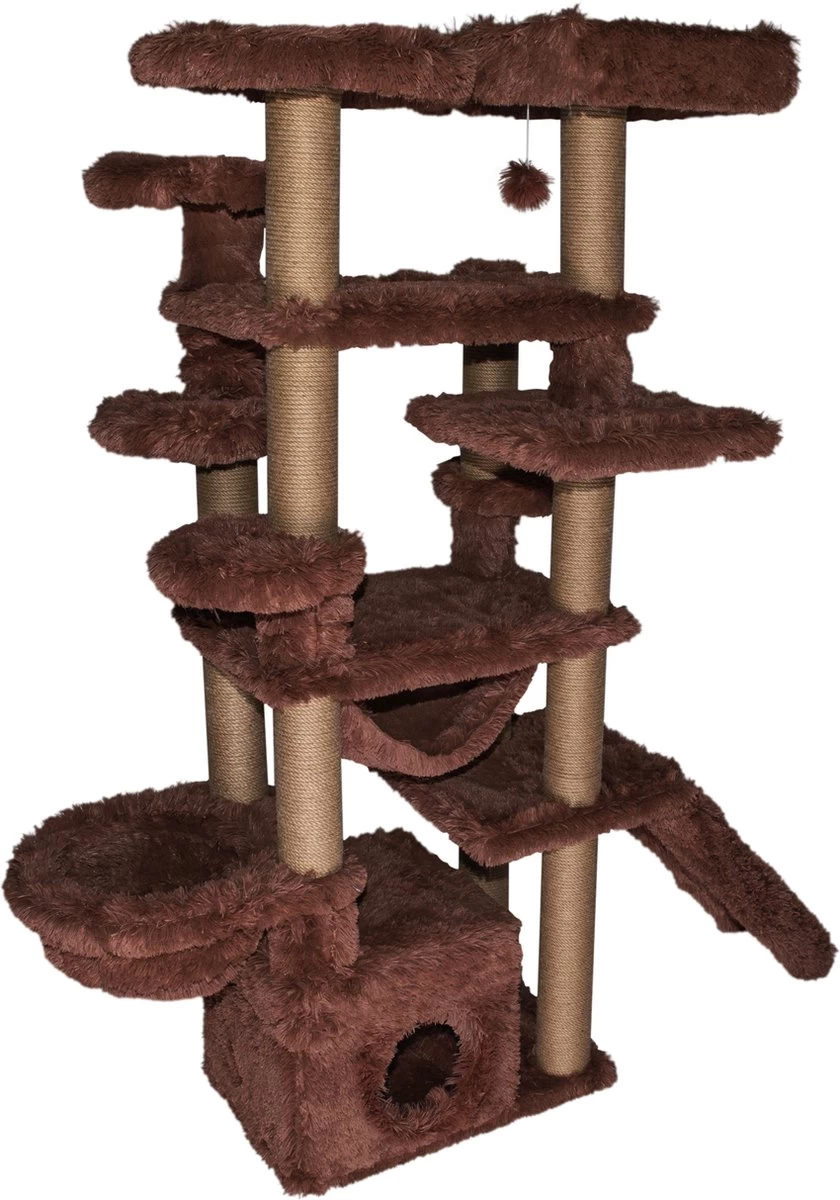 Topmast Krabpaal Fluffy Malta – Bruin – 166 X 65 X 173 Cm – Krabpaal Voor Grote Katten En Zware Katten – Met Kattenhuis En Hangmat – Stevig Sisal Touw