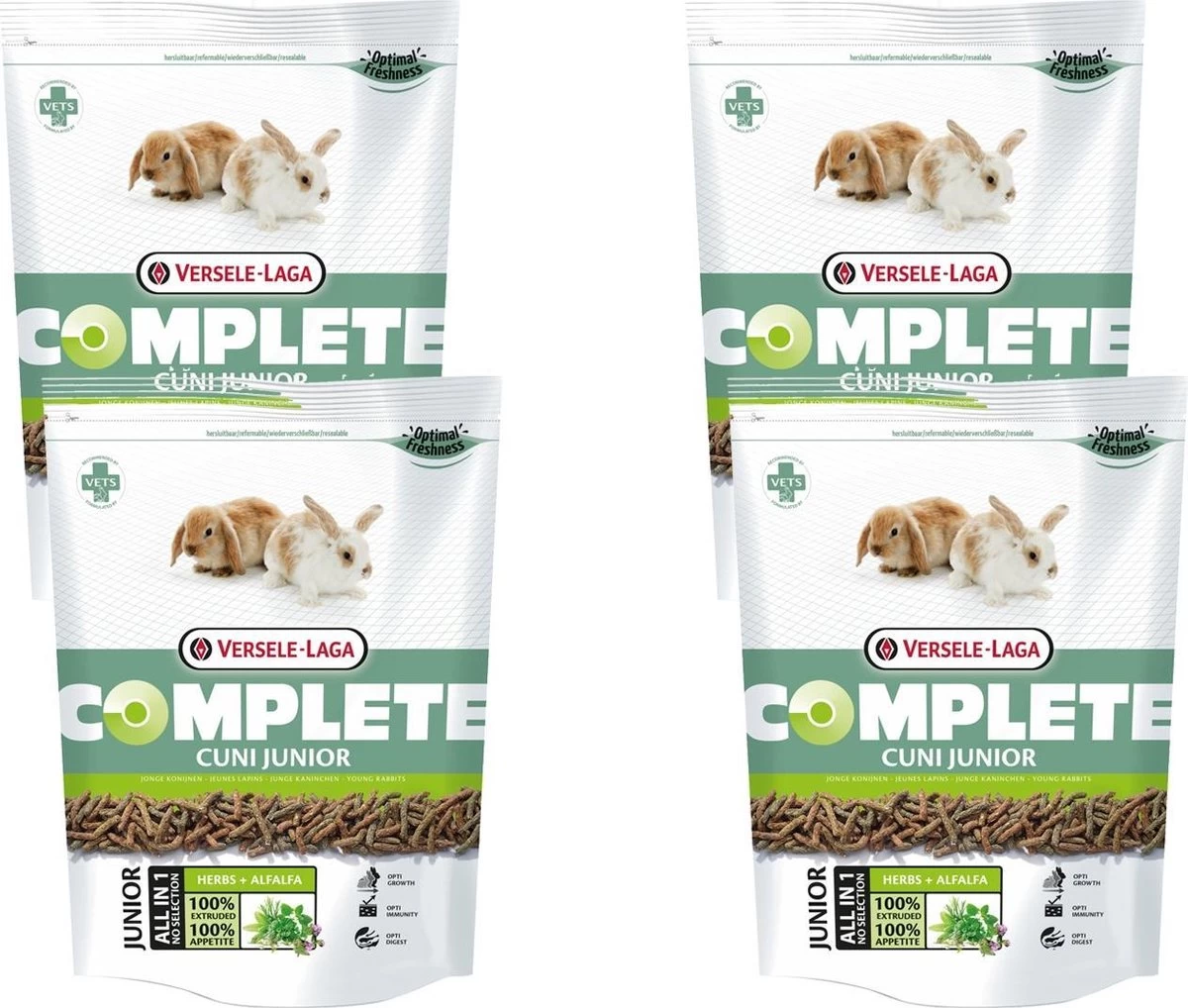 Versele Laga Complete Cuni junior is voeding zonder zorgen. Het smakelijke All in 1 korreltje voorkomt selectief eetgedrag. Zo krijgt jouw jonge konijntje alle essentiele voedingsstoffen binnen en blijft het kerngezond. De graanvrije voeding met lange vezels kent een specifiek hoger gehalte aan calcium, eiwitten en vitamines; alle bouwstoffen voor een optimale groei. br /Versele Laga Complete junior is ontwikkeld door dierenartsen gebaseerd op geavanceerde wetenschappelijke inzichten.br /-All-in-one – geen selectief eetgedrag mogelijkbr /-Zonder granen. Hoog eiwit%, lange vezels o.a. alfalfa calciumrijk hooi = optimale groeibr /-Verrijkt met kruiden voor een optimale maag en darmwerking