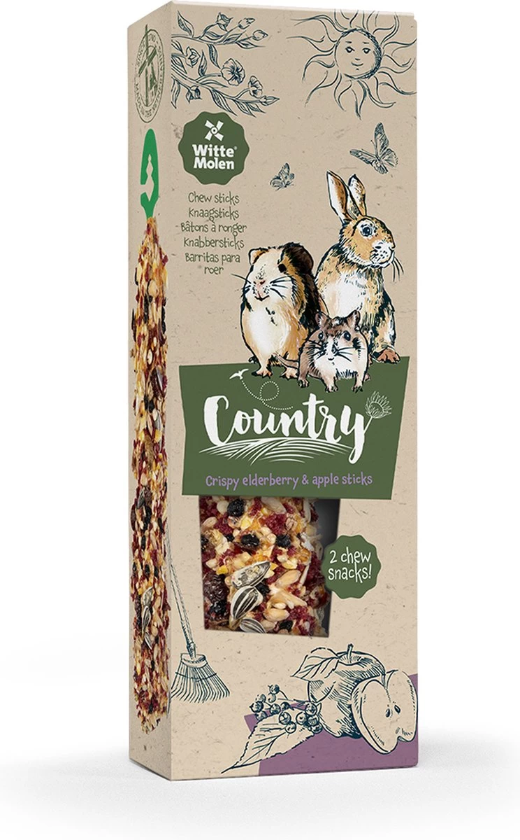 Deze Country knaagstick voor konijnen en knaagdieren brengt je terug naar eenvoudiger tijden. Een krokante, in de oven gebakken snack aan een eerlijke prijs van de Brabantsche Witte Molen die al sinds 1740 draait. Waar we de beste grondstoffen samenbrengen met onze kennis over elk dier om snacks te maken waar je gewoon op kunt rekenen. Urenlange afleiding gegarandeerd! Witte Molen kwaliteit: gisteren, vandaag en morgen!